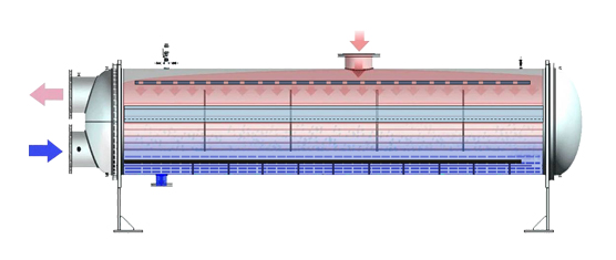 運用行業(yè)領先的高效冷凝傳熱管,優(yōu)化冷凝器結構布置,換熱性能更優(yōu)。在底部設有多重擾流的逆流過冷室,提高過冷度。